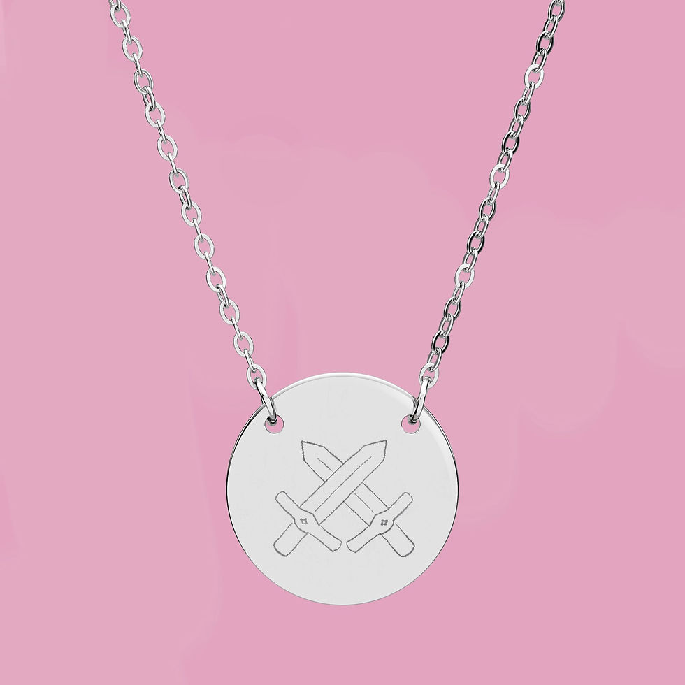 Engraved Circle Necklace — Crossed Swords Pendant